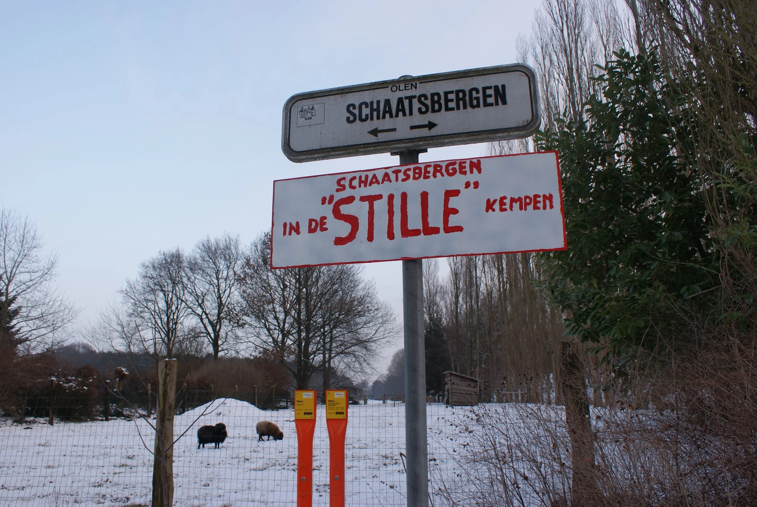 Schaatsbergen is een gehucht van Olen, vlakbij de E313, het Albertkanaal en een lawaaierige industriezone. Ik zie meteen waar ik moet aanbellen. Decort Diepvriesprodukten. Mevrouw Decort doet open, ik heb geluk, zij hoùden van diepvries en van de winter. Met allemaal fervente skiërs in de familie, "elk jaar gaan we wel twee of drie keer op skivakantie." In huis hebben ze ook een groot schilderij hangen, een wintertafereel met stille boerenhuizen. Het Oude Schaatsbergen misschien? Nee, Schaatsbergen is het niet. En vanwaar die naam komt, weet ze niet: er zijn hier geen bergen en er is ook geen ijs om te schaatsen.