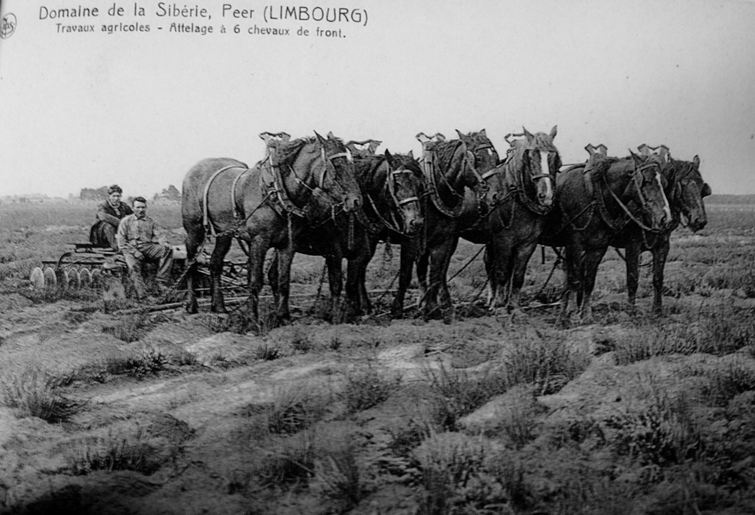 't Waren slechte tijden, 't was crisis, er was weinig werk, en dus begonnen de boeren maar arme grond en hei te ontginnen met jong werkvolk, dat goedkoop was natuurlijk. En wij moesten naar Siberië. Zo noemde die boer dat stuk grond, een grote plak hei bij de Hollandse grens, een heel eind te voet door de bossen. Wij moesten stronken uitspitten, bulten afgraven en putten dempen. Alles met de hand. Niks machines. En als die grond effen was, dan moesten we die omploegen en met mest en teeltaarde vruchtbaar maken. Het hele jaar door stonden wij daar te spitten en te graven. Ook op winterdagen werkten we door, met in de kant een vuurke om onze handen te warmen. Soms moesten wij ook een bos kappen en die bomen sleepten we weg met een paard. Zo heb ik mijn been gebroken met een stam die tegen mijn been schoot. Dat onderbeen in een knak. Ze hebben mij uit dat bos gedragen met twee man. En ik moest mijn been vastpakken en aaneen houden met mijn eigen handen. Een jaar heb ik platgelegen, en twee keer hebben ze dat been opnieuw moeten breken omdat den doktoor het verkeerd aan elkaar had gezet."