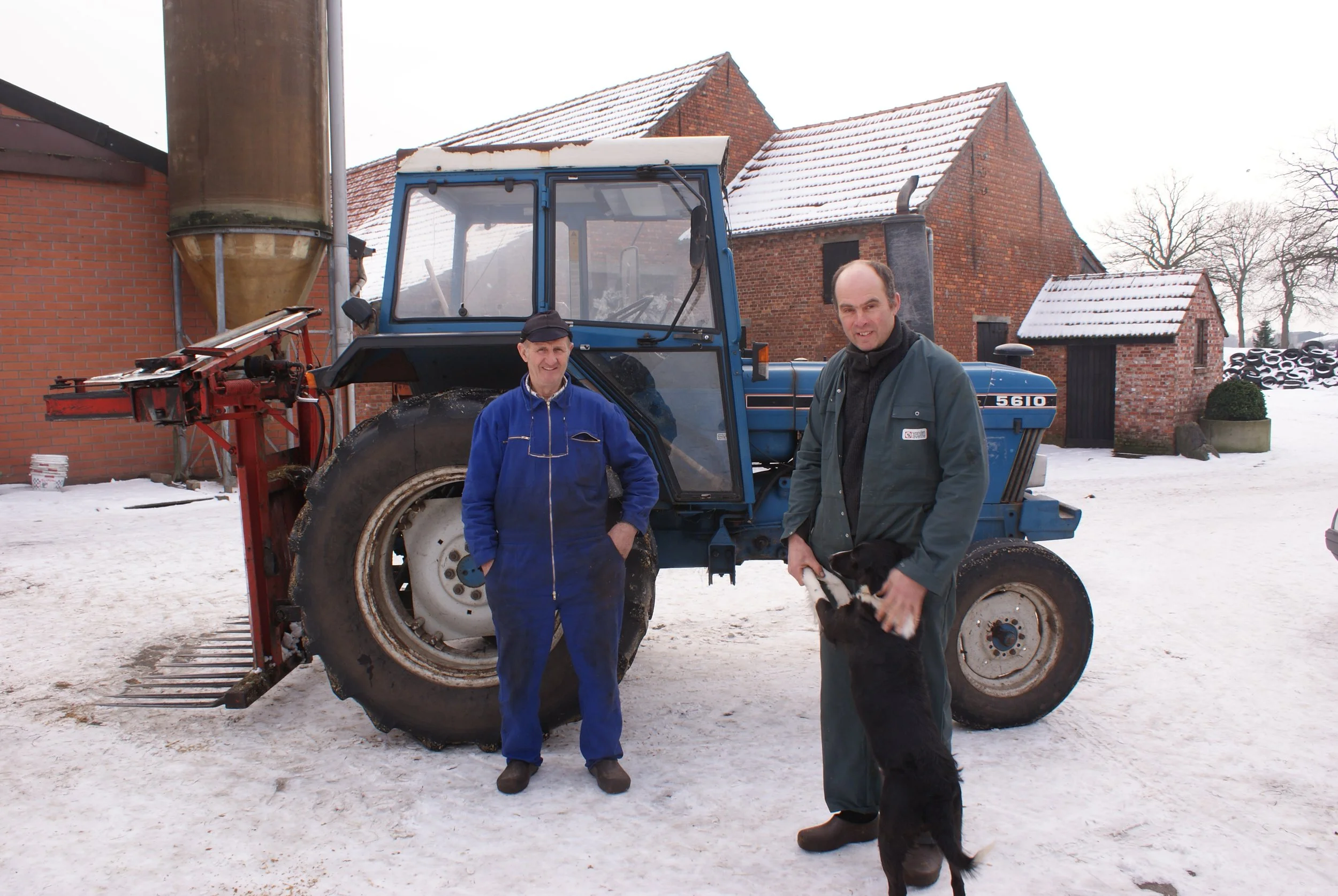 En of ik weet dat ik bij de énige zingende boer van België terecht ben gekomen. Hij is al op radio en tv geweest. Boer Martijn, de zingende boer! Als kind zong hij al op de fiets, als jongeman stond hij op de biljart met een keu als microfoon. Hij heeft een repertoire van tweehonderddertig liedjes. Of hij ook een liedje over de winter heeft? 't Is weer voorbij die mooie zomer, dat is het enige.